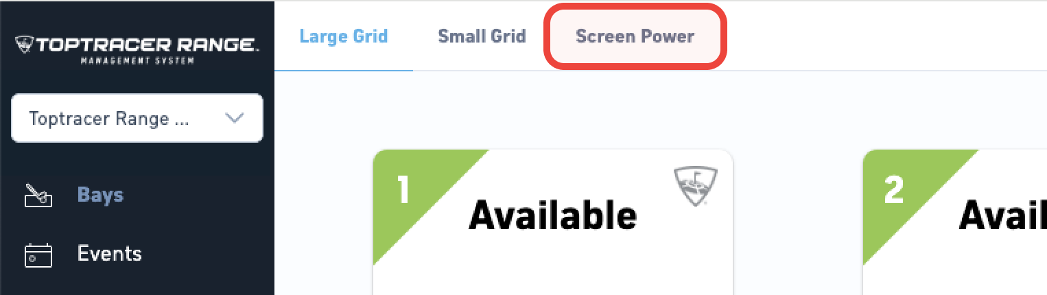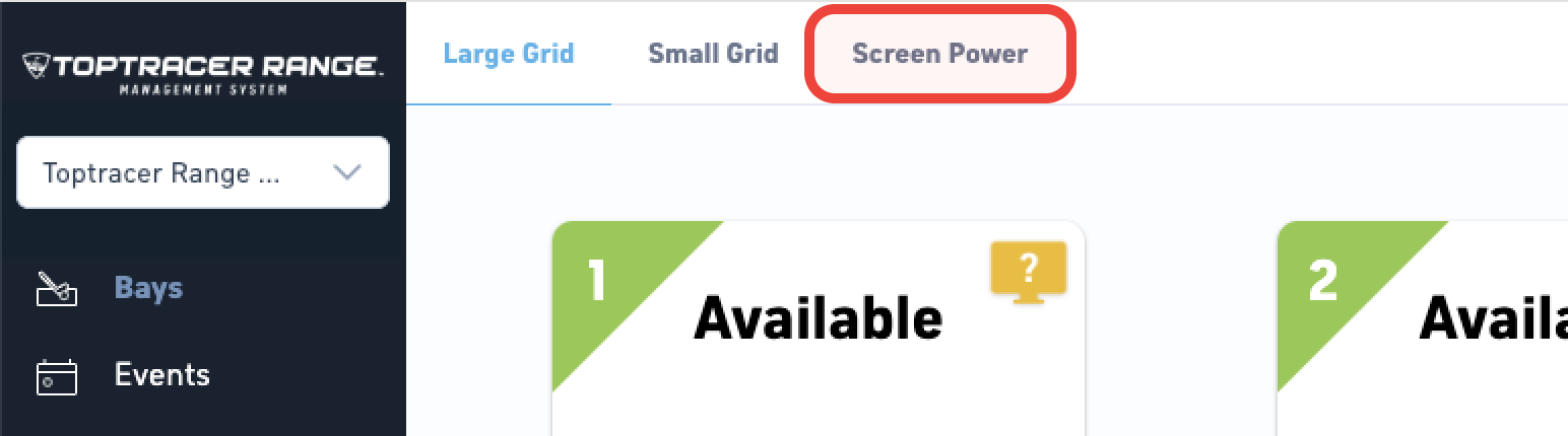Important: Use only one method to control power. If you turn screens on with Screen Power, you must also turn them off with Screen Power. The same is true for using a physical breaker. Mixing the two will cause unexpected issues. Toptracer Range does not troubleshoot problems caused by this.
