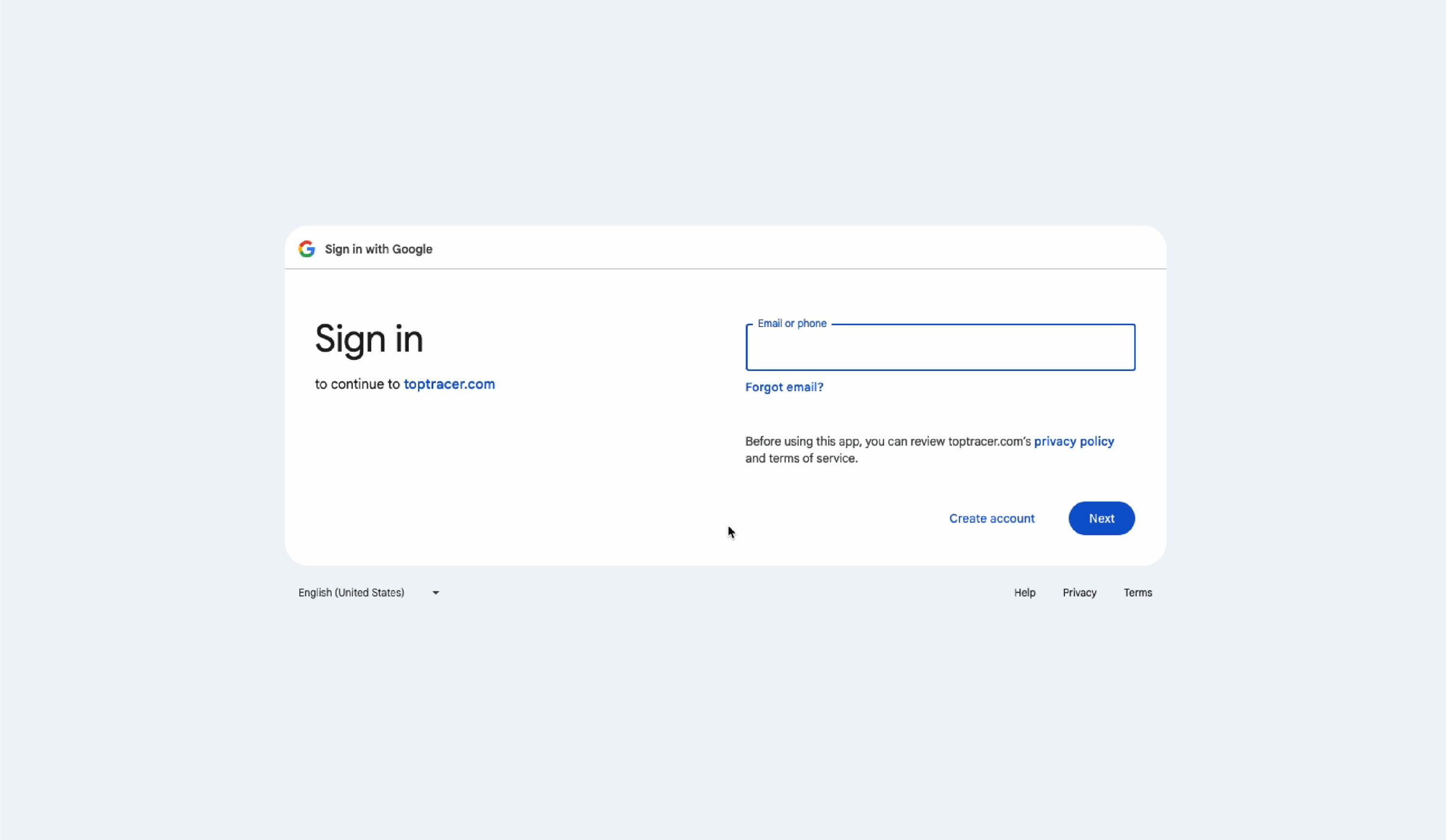 If the email address you entered is already associated with a Toptracer account, you will be guided through the login method you have used in the past.