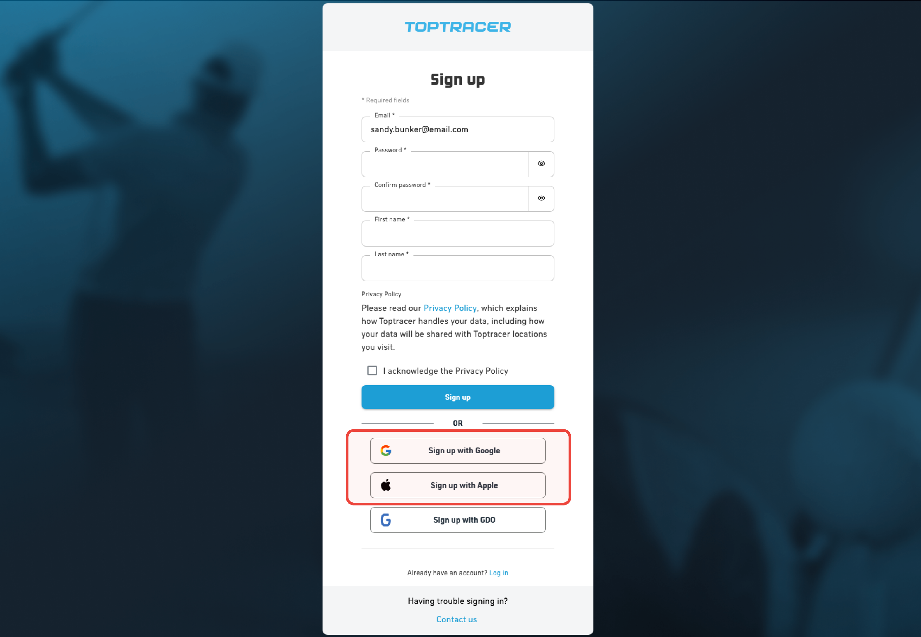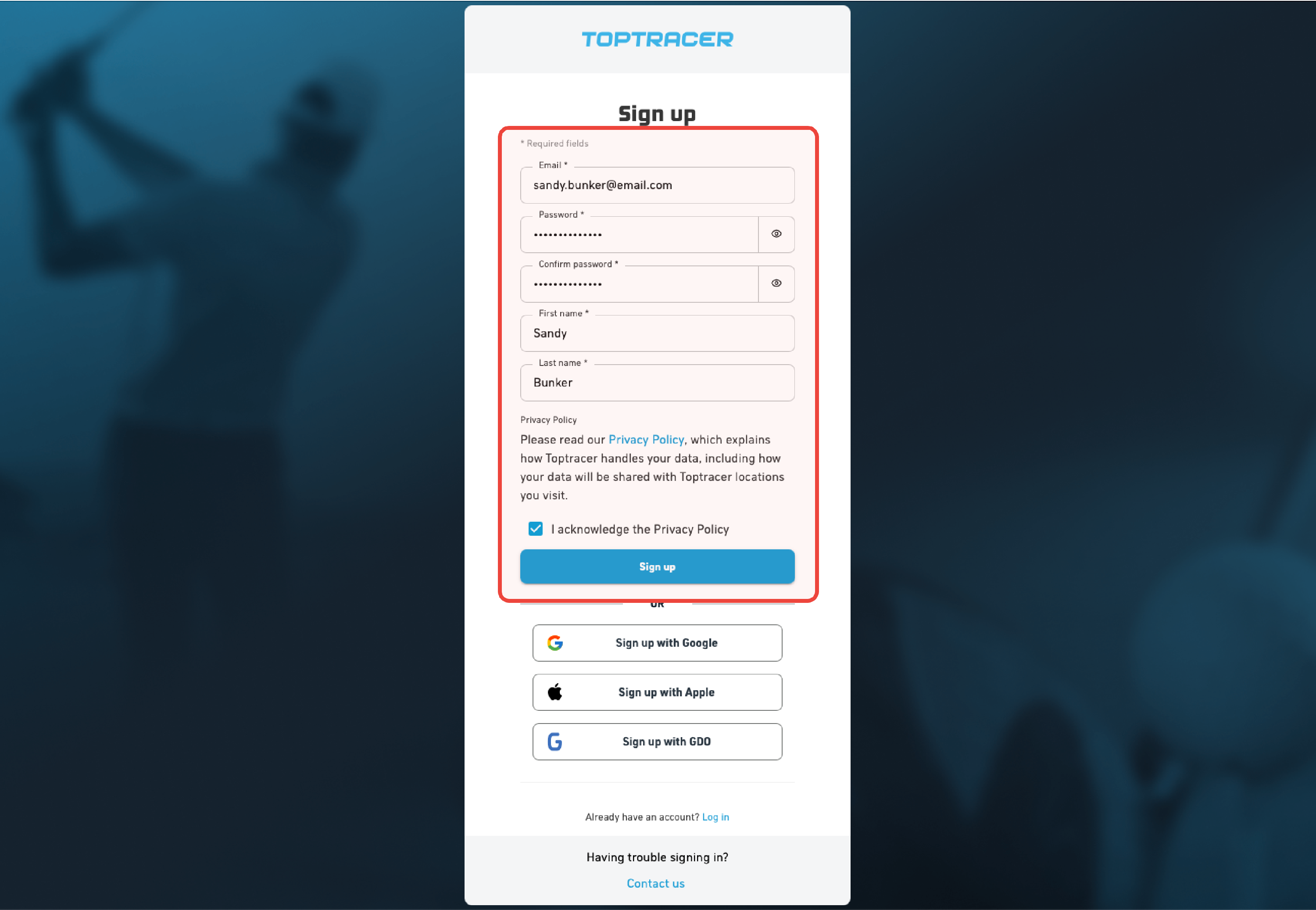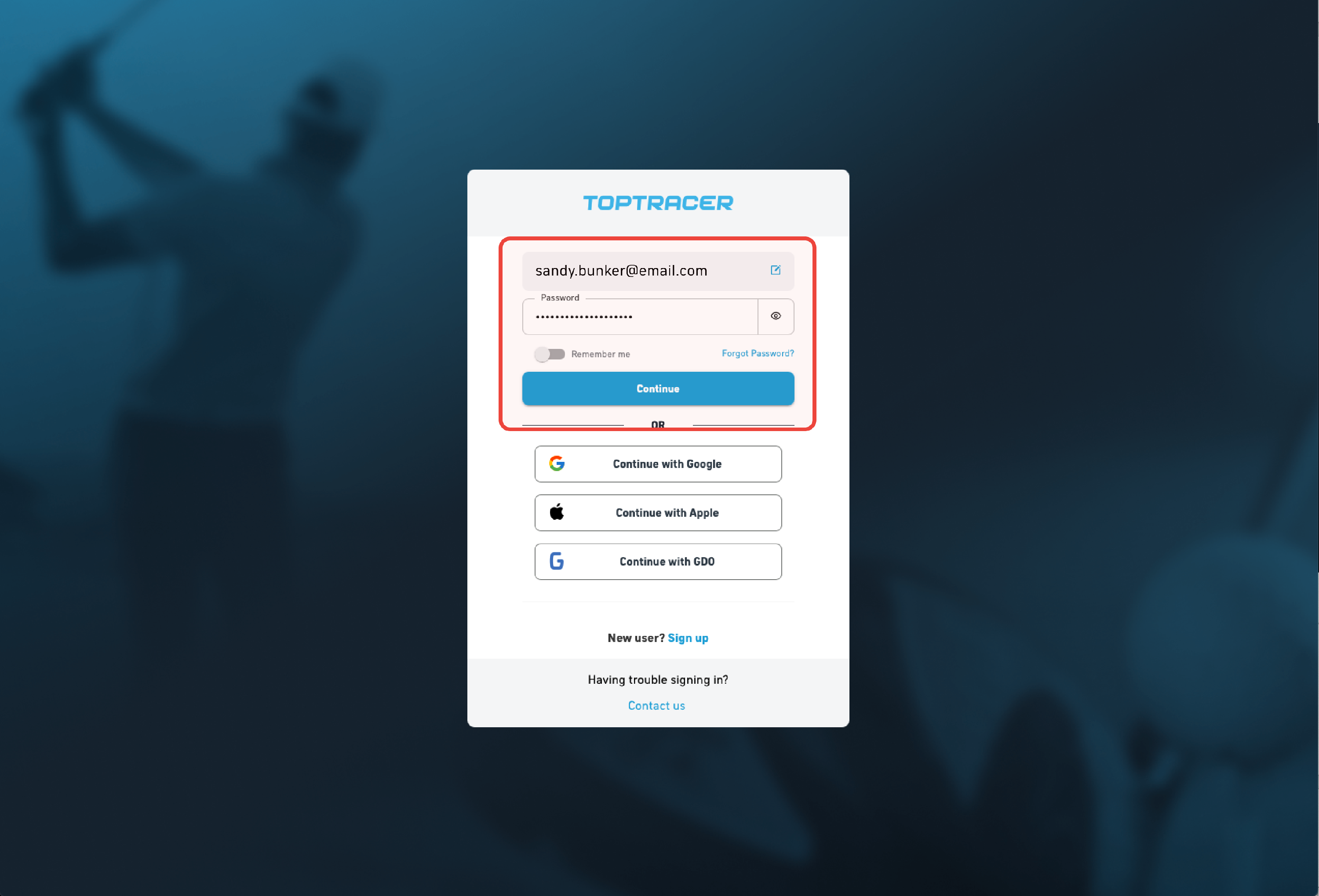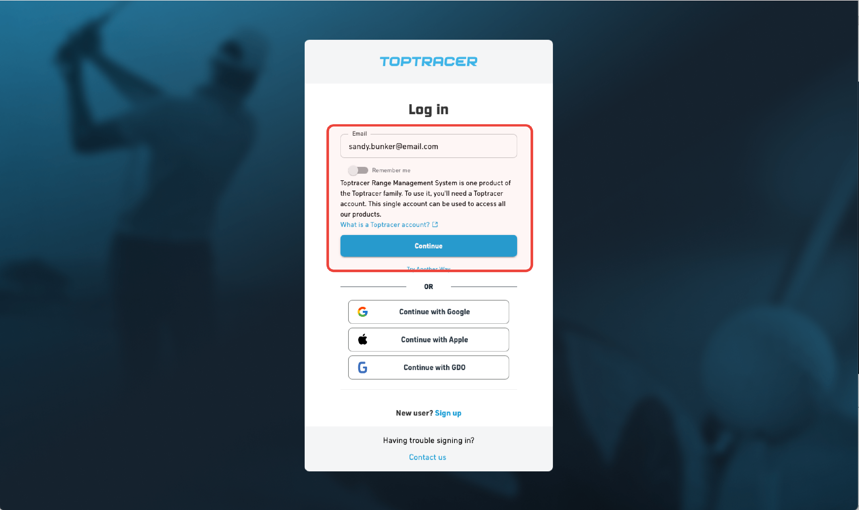 - If you’ve logged into any other Toptracer product (such as the Toptracer Range app or Toptracer Coach), you already have a Toptracer account. Use the same account to log into TRMS — one login works across all Toptracer products.