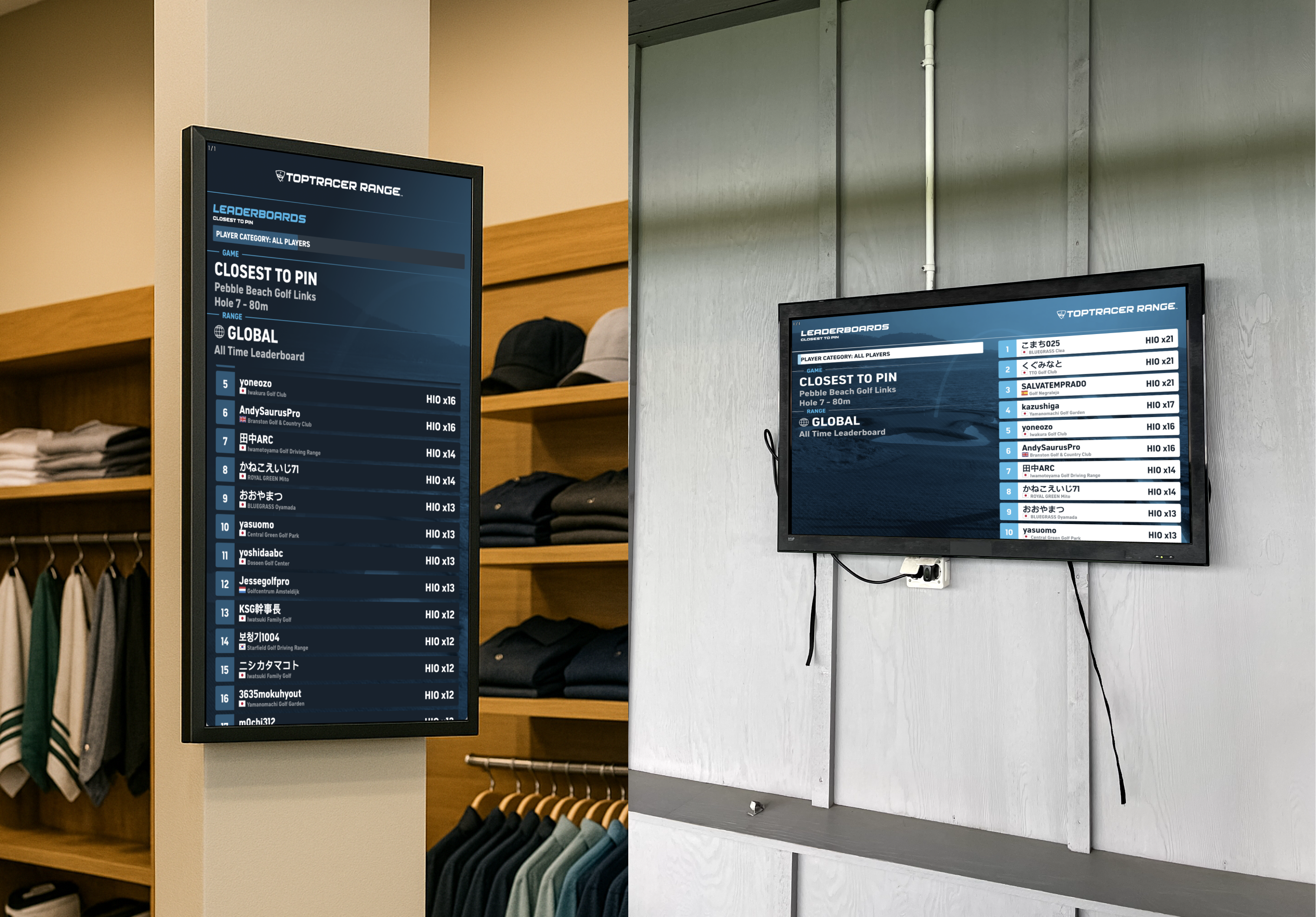 Displays in TRMS are separate monitors or TVs that you can configure to show content such as leaderboards, events, or images. They are not the bay screens used by players.