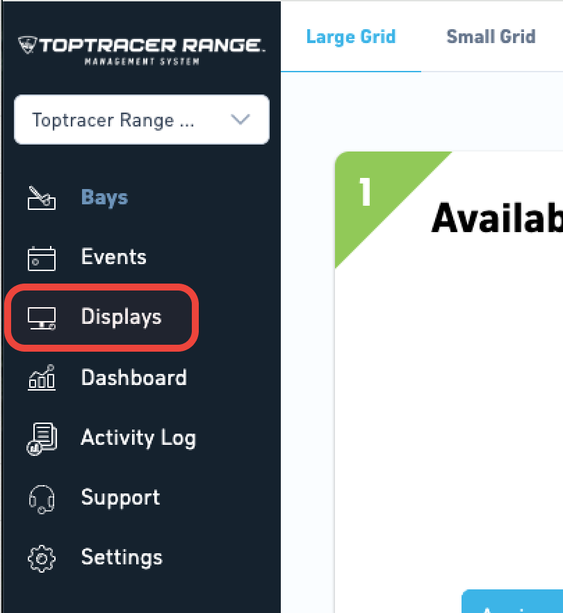 Displays in TRMS are separate monitors or TVs that you can configure to show content such as leaderboards, events, or images. They are not the bay screens used by players.