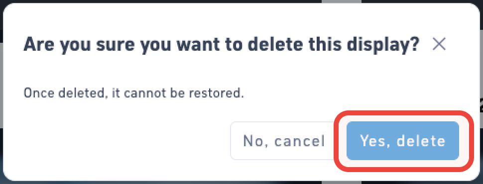 Once deleted, the display is removed from TRMS and will no longer show any content on the physical display.