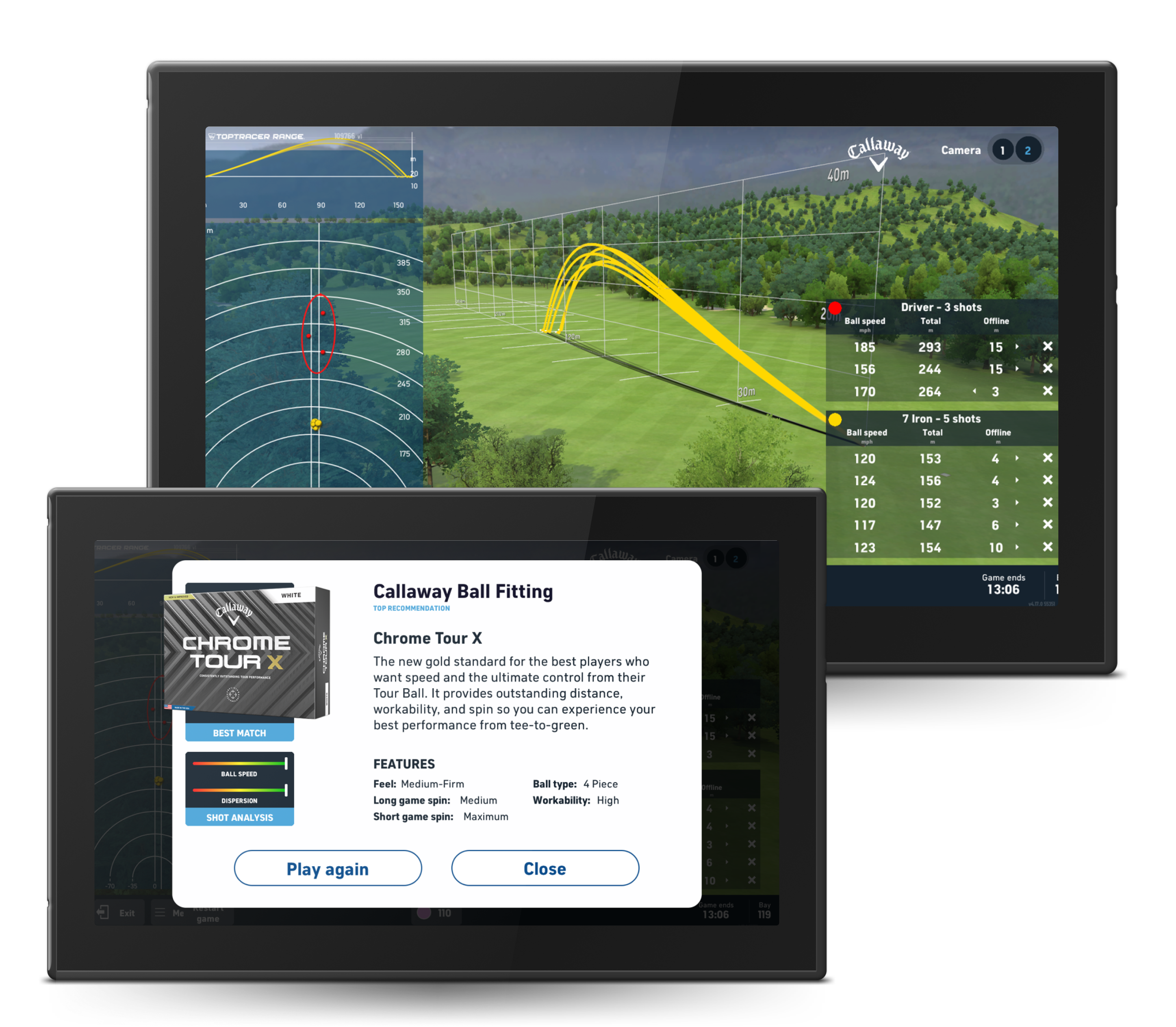 - Club-specific stats: Tracks detailed performance for woods, hybrids, irons, and wedges. Data is saved to the player's profile in Toptracer Range app if they scan the QR code and log in.